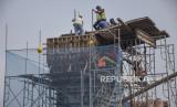 Pekerja menyelesaikan proyek pembangunan Jalan Layang (Flyover) Ciroyom di Jalan Ciroyom, Andir, Kota Bandung, Jawa Barat, Senin (19/6/2023). Menteri Perhubungan (Menhub) Budi Karya Sumadi menyatakan, proyek flyover Ciroyom yang merupakan fasilitas pendukung operasional kereta pengumpan (feeder) Kereta Api Cepat Jakarta Bandung (KCJB) tersebut rampung pada akhir tahun 2023. Flyover tersebut bertujuan untuk membantu kelancaran perjalanan kereta feeder KCJB serta mengurangi kemacetan lalu lintas jalan raya. (FOTO : ABDAN SYAKURA/REPUBLIKA)