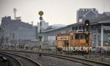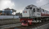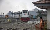 Kereta api (KA) melintas di dekat proyek pembangunan fasilitas pendukung Kereta Cepat Jakarta Bandung (KCJB) di Stasiun Ciroyom, Andir, Kota Bandung, Jawa Barat, Senin (19/6/2023). Menteri Perhubungan (Menhub) Budi Karya Sumadi menyatakan, proyek flyover Ciroyom yang merupakan fasilitas pendukung operasional kereta pengumpan (feeder) Kereta Api Cepat Jakarta Bandung (KCJB) tersebut rampung pada akhir tahun 2023. Flyover tersebut bertujuan untuk membantu kelancaran perjalanan kereta feeder KCJB serta mengurangi kemacetan lalu lintas jalan raya. (FOTO : ABDAN SYAKURA/REPUBLIKA)