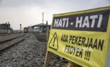 Pekerja menyelesaikan proyek pembangunan fasilitas pendukung Kereta Cepat Jakarta Bandung (KCJB) di Stasiun Ciroyom, Andir, Kota Bandung, Jawa Barat, Senin (19/6/2023). Menteri Perhubungan (Menhub) Budi Karya Sumadi menyatakan, proyek flyover Ciroyom yang merupakan fasilitas pendukung operasional kereta pengumpan (feeder) Kereta Api Cepat Jakarta Bandung (KCJB) tersebut rampung pada akhir tahun 2023. Flyover tersebut bertujuan untuk membantu kelancaran perjalanan kereta feeder KCJB serta mengurangi kemacetan lalu lintas jalan raya. (FOTO : ABDAN SYAKURA/REPUBLIKA)
