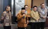 Wakil Presiden Maruf Amin (kedua kiri) bersama Wakil Menteri BUMN Kartika Wirjoatmodjo (ketiga kanan), Direktur Utama PT Bank Syariah Indonesia Tbk Hery Gunardi (kedua kanan) seusai seremoni pencatatan perdana EBAS-SP SMF-BRIS01 di BEI, Jakarta, Senin (19/6/2023). EBAS-SP SMF-BRIS01 hasil kerjasama PT Bank Syariah Indonesia Tbk (BRIS) dan PT Sarana Multigriya Finansial (SMF) ini menjadi gebrakan baru tumbuhkan ekonomi syariah. (FOTO : Dok Republika)