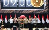 REPUBLIKA.CO.ID, JAKARTA -- Wakil Presiden Maruf Amin bersama Sekretaris Jenderal Masyarakat Ekonomi Syariah Iggi Haruman Achsien, Ketua Eksekutif Pengawas Pasar Modal Keuangan Derivatif dan Bursa Karbon OJK Inarno Djajadi, Wakil Menteri Keuangan RI Suahasil Nazara, Wakil Menteri BUMN Kartika Wirjoatmodjo, Direktur Utama PT Bank Syariah Indonesia Tbk Hery Gunardi, Direktur Utama PT Sarana Multigriya Finansial (persero) Ananta Wiyogo, dan Direktur Utama PT Bursa Efek Indonesia (BEI) Iman Rachman melakukan seremoni pencatatan perdana EBAS-SP SMF-BRIS01 di BEI, Jakarta, Senin (19/6/2023).