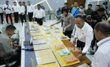 Kapolrestabes Bandung Kombes Pol Budi Sartono didampingi Kasat Narkoba AKBP Fauzan Sahrir memperlihatkan barang bukti saat konferensi pers tindak pidana penyalahgunaan narkotika jenis sabu di Mapolrestabes Bandung, Selasa (20/6/2023). Satuan Reserse Narkoba Polrestabes Bandung mengamankan pasutri berinisial RAR dan HR serta seorang lainnya yang berinisial VGA. Ketiganya diduga melakukan tindak pidana penyalahgunaan narkotika jenis sabu. Dari tangan para pelaku, polisi menyita barang bukti sabu dengan berat 3,8 kilogram. Keduanya pun disebut merupakan residivis dan jadi bagian dari jaringan narkotika antar provinsi. Ketiga pelaku disangkakan pasal tentang narkotika dan diancam pidana kurungan minimal 6 tahun penjara. (FOTO : Edi Yusuf/Republika)