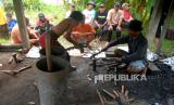Pandai besi mengerjakan reparasi pisau dan alat pertanian di Gamping, Sleman, Yogyakarta, Selasa (20/6/2023). Jelang Hari Raya Idul Adha 1444H permintaan pisau baru dan reparasi mengalami peningkatan dibandingkan hari biasa. Pisau dan alat pertanian yang dibuat secara tradisional ini dijual mulai Rp 100 ribuan, sedangkan untuk reparasi pisau atau alat pertanian dikenakan biaya mulai Rp 15 ribuan. (FOTO : Republika/Wihdan Hidayat)