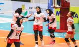 Pebola voli putri Indonesia melakukan selebrasi setelah berhasil meraih angka dari pebola voli Filipina pada pertandingan grup A Asian Volleyball Confederation (AVC) Challenge Cup 2023 di GOR Tri Dharma, Gresik, Jawa Timur, Selasa (20/6/2023). Tim voli Indonesia menang atas Filipina dengan skor 3-0 (25-17, 25-20, dan 25-10). (FOTO : ANTARA FOTO/Rizal Hanafi)