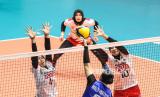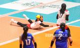 Pebola voli putri Indonesia Agustin Wulandhari (tengah) berusaha mengembalikan bola ke arah pebola voli Filipina pada pertandingan grup A Asian Volleyball Confederation (AVC) Challenge Cup 2023 di GOR Tri Dharma, Gresik, Jawa Timur, Selasa (20/6/2023). Tim voli Indonesia menang atas Filipina dengan skor 3-0 (25-17, 25-20, dan 25-10). (FOTO : ANTARA FOTO/Rizal Hanafi)