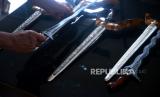 Beberapa keris dengan Tangguh Entho-Entho karya Ki Empu Sungkowo Harumbrojo di Rumah Tempa Pamor, Sleman, Yogyakarta, Rabu (21/6/2023). Ki Empu Sungkowo merupakan keturunan ke-17 Empu Supa Majapahit. Di sini memiliki ciri khas yakni membuat keris dengan Tangguh atau Gaya Entho-Entho, meskipun bisa membuat keris dengan tangguh yang lain. Selama berkiprah sejak 1995 Ki Empu Sungko sudah membuat lebih dari 250 keris, dan karyanya sudah menjangkau pasar internasional. Uniknya, seluruh proses pembuatan keris ini masih tradisi atau menggunakan tenaga manusia. (FOTO : Republika/Wihdan Hidayat)