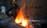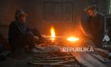 REPUBLIKA.CO.ID, SLEMAN -- Ki Empu Sungkowo Harumbrojo menunggu pembakaran besi saat membuat keris di Rumah Tempa Pamor, Sleman, Yogyakarta, Rabu (21/6/2023).