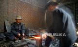 Ki Empu Sungkowo Harumbrojo (kiri) membuat keris bersama asisten di Rumah Tempa Pamor, Sleman, Yogyakarta, Rabu (21/6/2023). Ki Empu Sungkowo merupakan keturunan ke-17 Empu Supa Majapahit. Di sini memiliki ciri khas yakni membuat keris dengan Tangguh atau Gaya Entho-Entho, meskipun bisa membuat keris dengan tangguh yang lain. Selama berkiprah sejak 1995 Ki Empu Sungko sudah membuat lebih dari 250 keris, dan karyanya sudah menjangkau pasar internasional. Uniknya, seluruh proses pembuatan keris ini masih tradisi atau menggunakan tenaga manusia. (FOTO : Republika/Wihdan Hidayat)