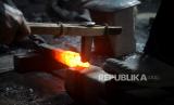 Pekerja memotong besi bahan baku membuat keris di Rumah Tempa Pamor Ki Empu Sungkowo Harumbrojo, Sleman, Yogyakarta, Rabu (21/6/2023). Ki Empu Sungkowo merupakan keturunan ke-17 Empu Supa Majapahit. Di sini memiliki ciri khas yakni membuat keris dengan Tangguh atau Gaya Entho-Entho, meskipun bisa membuat keris dengan tangguh yang lain. Selama berkiprah sejak 1995 Ki Empu Sungko sudah membuat lebih dari 250 keris, dan karyanya sudah menjangkau pasar internasional. Uniknya, seluruh proses pembuatan keris ini masih tradisi atau menggunakan tenaga manusia. (FOTO : Republika/Wihdan Hidayat)