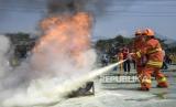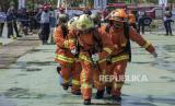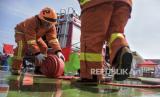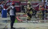 Petugas pemadam kebakaran (Damkar) mengikuti Fire Fighting Skill Competition (FFSC) Tingkat Provinsi Jawa Barat di area Stadion Si Jalak Harupat, Kutawaringin, Kabupaten Bandung, Jawa Barat, Rabu (21/6/2023). Kompetisi tersebut diikuti oleh 19 tim pemadam kebakaran dan sembilan tim pemadam kebakaran perusahaan dari berbagai kota/kabupaten se-Jawa Barat . Kompetisi tersebut bertujuan untuk meningkatkan profesionalitas dan keterampilan serta sarana silaturahmi petugas damkar. (FOTO : ABDAN SYAKURA/REPUBLIKA)