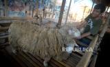 Penjaga memeriksa kondisi Domba Merino yang dijual untuk kurban di Panitia Pengadaan Hewan Qurban (PPHQ) Angkatan Muda Muhammadiyah (AMM) di Kotagede, Yogyakarta, Rabu (21/6/2023). Kebutuhan domba dan kambing untuk Idul Adha 1444H di DIY masih defisit. Ketersediaan hewan ternak domba 19.019 ekor dan kambing 27.022 ekor, sementara itu kebutuhan domba sebesar 26.966 ekor serta kambing sebesar 23.099 ekor. Untuk hewan ternak domba masih defisit 7.947 ekor dan kambing surplus 3.923 ekor. (FOTO : Republika/Wihdan Hidayat)