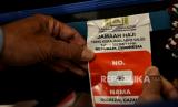 Petugas menemplekan stiker penanda jamaah haji undangan Raja Salman sebelum berangkat ke Tanah Suci di Jakarta, Rabu (21/6/2023). Sebanyak 50 jamaah haji asal Indonesia menjadi tamu undangan dari Raja Salman Bin Abdulaziz Alsaud untuk berangkat ke Tanah Suci pada hari ini Rabu (21/6) untuk melaksanakan Ibadah Haji 1444 Hijriah. (FOTO : Republika/Thoudy Badai)