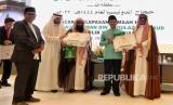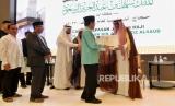 REPUBLIKA.CO.ID,JAKARTA -- Duta Besar (Dubes) Arab Saudi untuk Indonesia Faisal Abdullah Amodi (kanan) menyerahkan simbolis kepada Imam Besar Masjid Istiqlal Nasaruddin Umar (kedua kanan) saat kegiatan pelepasan tamu jamaah haji undangan Raja Salman di Jakarta, Rabu (21/6/2023).