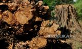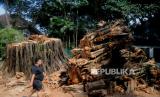 Bagian pohon tumbang yang masih berada di pinggir Jalan Salak, Kota Bogor, Jawa Barat, Selasa (20/6/2023). Pohon Bunut dengan tinggi lebih dari 10 meter yang berusia ratusan tahun tersebut tumbang akibat hujan deras disertai angin kencang pada Senin (19/6/2023), hingga menimpa wisma dan lima kios UMKM. Tidak ada korban jiwa pada peristiwa tersebut namun bagian potongan pohon tersebut masih menutup setengah jalan sehingga mengganggu arus lalu lintas. (FOTO : Republika/Putra M. Akbar)
