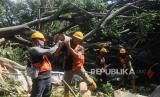 REPUBLIKA.CO.ID, BOGOR -- Petugas mengangkut dahan pohon tumbang di Jalan Salak, Kota Bogor, Jawa Barat, Selasa (20/6/2023).