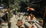 Petugas mengangkut dahan pohon tumbang di Jalan Salak, Kota Bogor, Jawa Barat, Selasa (20/6/2023). Pohon Bunut dengan tinggi lebih dari 10 meter yang berusia ratusan tahun tersebut tumbang akibat hujan deras disertai angin kencang pada Senin (19/6/2023), hingga menimpa wisma dan lima kios UMKM. Tidak ada korban jiwa pada peristiwa tersebut namun bagian potongan pohon tersebut masih menutup setengah jalan sehingga mengganggu arus lalu lintas. (FOTO : Republika/Putra M. Akbar)