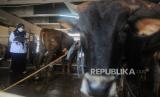 Sapi yang sehat diberikan kode batang di Sungai Bambu, Tanjung Priok, Jakarta Utara, Rabu (21/6/2023). Pemeriksaan tersebut untuk menjamin kesehatan hewan kurban yang dijual di Jakarta terbebas dari Penyakit Mulut Kaki (PMK) dan Lumpy Skin Disease (LSD). (FOTO : Republika/Putra M. Akbar)