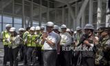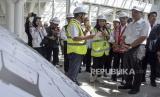 Menko Marves Luhut Binsar Pandjaitan (kiri) beserta jajaran meninjau Stasiun Kereta Cepat Jakarta Bandung (KCJB) di Tegalluar, Kabupaten Bandung, Kamis (22/6/2023). Menteri Koordinator Bidang Maritim dan Investasi (Menko Marves) Luhut Binsar Pandjaitan bersama Menteri Perhubungan Budi Karya Sumadi dan Gubernur Jawa Barat Ridwan Kamil melakukan uji coba menumpangi KCJB dari Stasiun Halim menuju Stasiun Tegalluar dengan kecepatan maksimum 385 kilometer per jam. Selain itu, Menko Marves bersama rombongan meninjau sejumlah fasilitas, sarana dan prasarana pendukung KCJB di Stasiun KCJB Tegalluar serta Depo KCJB. (FOTO : ABDAN SYAKURA/REPUBLIKA)