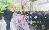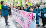 REPUBLIKA.CO.ID,MALANG -- Sejumlah mahasiswa Universitas Brawijaya (UB) melakukan aksi demonstrasi di depan lobi Gedung Rektorat UB, Kota Malang, Kamis (22/6/2023).