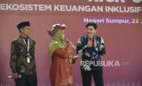 Kepala Eksekutif Perilaku Pelaku Usaha Jasa Keuangan, Edukasi dan Pelindungan Konsumen OJK Friderica Widyasari Dewi (kanan) saat Kick Off Generic Model Ekosistem Keuangan Inklusif (GM EKI) di Kampuang Nagari Sumpur, Tanah Datar, Sumatera Barat, Kamis (22/6/2023). Melalui Program GM EKI ini diharapkan dapat meningkatkan akses keuangan masyarakat, mempercepat pengembangan dan meningkatkan kesejahteraan masyarakat desa. (FOTO : Republika/Edwin Dwi Putranto)