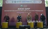 Kepala Eksekutif Perilaku Pelaku Usaha Jasa Keuangan, Edukasi dan Pelindungan Konsumen OJK Friderica Widyasari Dewi (keempat kiri) bersama Kepala Kepolisian Daerah Sumatera Barat Inspektur Jenderal Polisi Suharyono (ketiga kiri), Kepala Departemen Literasi, Inklusi Keuangan dan Komunikasi OJK Aman Santosa (kedua kanan) dan Kepala Biro Perekonomian Provinsi Sumatera Barat Ria Wijayanti (kanan) saat Kick Off Generic Model Ekosistem Keuangan Inklusif (GM EKI) di Kampuang Nagari Sumpur, Tanah Datar, Sumatera Barat, Kamis (22/6/2023). Melalui Program GM EKI ini diharapkan dapat meningkatkan akses keuangan masyarakat, mempercepat pengembangan dan meningkatkan kesejahteraan masyarakat desa. (FOTO : Republika/Edwin Dwi Putranto)