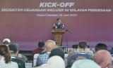 Kepala Eksekutif Perilaku Pelaku Usaha Jasa Keuangan, Edukasi dan Pelindungan Konsumen OJK Friderica Widyasari Dewi memberikan sambutan saat Kick Off Generic Model Ekosistem Keuangan Inklusif (GM EKI) di Kampuang Nagari Sumpur, Tanah Datar, Sumatera Barat, Kamis (22/6/2023). Melalui Program GM EKI ini diharapkan dapat meningkatkan akses keuangan masyarakat, mempercepat pengembangan dan meningkatkan kesejahteraan masyarakat desa. (FOTO : Republika/Edwin Dwi Putranto)