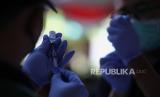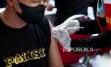 REPUBLIKA.CO.ID, SURABAYA -- Petugas kesehatan menyuntikkan vaksin COVID-19 lanjutan kepada warga saat vaksinasi massal gratis Hari Bhayangkara ke-77 di Surabaya, Jawa Timur, Kamis (22/6/2023).