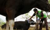 REPUBLIKA.CO.ID, MAKASSAR -- Petugas dari Dinas Pertanian dan Perikanan Kota Makassar melakukan pemeriksaan hewan kurban yang dijual di Makassar, Sulawesi Selatan, Jumat (23/6/2023).