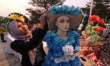 REPUBLIKA.CO.ID, KEDIRI -- Peserta menyelesaikan pembuatan lampion berbahan baku botol plastik bekas saat lomba daur ulang sampah di Taman Totok Kerot, Kediri, Jawa Timur, Jumat (23/6/2023).