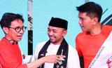 Corporate Secretary Bank BTN Ramon Armando (kanan) berbincang dengan Plh Kepala Dinas Pemuda dan Olahraga Provinsi DKI Jakarta Hendra Eka Permana (tengah) saat konferensi pers BTN Jakarta Run 2023 di Jakarta, Jumat (23/6/2023). (FOTO : Dok. BTN)