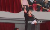 Ketua DPP PDI Perjuangan Puan Maharani menyampaikan sambutan pada puncak peringatan Bulan Bung Karno di Stadion Utama Gelora Bung Karno, Jakarta, Sabtu (24/6/2023). PDI Perjuangan menggelar konsolidasi akbar dalam memperingati puncak Bulan Bung Karno 2023 bertemakan Kepalkan Tangan Persatuan untuk Indonesia Raya yang dihadiri sekitar 100.000 orang relawan, simpatisan hingga kader. (FOTO : Republika/Putra M. Akbar)