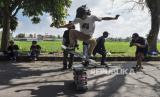 Seorang penggemar skateboard melakukan atraksi di Taman Makam Pahlawan (TMP), Kota Tasikmalaya, Jawa Barat, Sabtu (24/6/2023). Kegiatan yang diselenggarakan Komunitas Tasik Skate itu, diikuti ratusan pecinta skateboard dari berbagai daerah di Jawa Barat, Pontianak dan Sulawesi, dalam rangkaian Hari Skateboard Sedunia atau Go Skateboarding Day. (FOTO : Antara/Adeng Bustomi)
