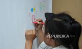 Seorang anak menggambar saat pameran gambar bertajuk Menggambar Ceria karya anak-anak sekolah dasar prasejahtera yang digelar Rumah Belajar Sabilulungan, Kota Bandung, di Jalan Suaksari II, Ahad (25/6/2023). Pameran menampilkan sekitar 160 gambar kreasi dari 35 pelajar yang merupakan anak-anak keluarga prasejahtera. Latar belakang diselenggarakan pameran tersebut untuk melatih para siswa berkreativitas dan mengekspresikan diri melalui gambar. (FOTO : Edi Yusuf/Republika)