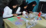 Sejumlah anak membuat gambar kolse saat pameran gambar bertajuk Menggambar Ceria karya anak-anak sekolah dasar prasejahtera yang digelar Rumah Belajar Sabilulungan, Kota Bandung, di Jalan Suaksari II, Ahad (25/6/2023). Pameran menampilkan sekitar 160 gambar kreasi dari 35 pelajar yang merupakan anak-anak keluarga prasejahtera. Latar belakang diselenggarakan pameran tersebut untuk melatih para siswa berkreativitas dan mengekspresikan diri melalui gambar. (FOTO : Edi Yusuf/Republika)