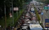 REPUBLIKA.CO.ID, JAKARTA -- Sejumlah kendaraan terjebak kemacetan di Jalan Benyamin Suaeb, Kemayoran, Jakarta Pusat, Ahad (25/6/2023).