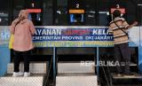 Warga mengurus berkas saat melakukan pembayaran pajak kendaraan bermotor di Pelayanan Samsat Keliling, Polda Metro Jaya, Jakarta, Senin (26/6/2023). Dalam rangka HUT ke-496 DKI Jakarta, Pemprov DKI Jakarta melalui Bapenda memberikan keringanan pajak kendaraan kepada warga DKI Jakarta dengan penghapusan sanksi administrasi secara jabatan untuk pajak kendaraan bermotor (PKB) dan penghapusan bea balik nama kendaraan motor (BBNKB) yang dimulai sejak 22 Juni hingga 29 Desember 2023 mendatang. (FOTO : Republika/Thoudy Badai)