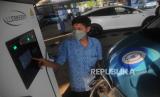 REPUBLIKA.CO.ID, JAKARTA -- Sopir mengisi daya mobil listrik di Kantor Operasional Blue Bird, Jakarta, Senin (26/6/2023).