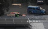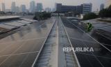 Teknisi mengecek panel surya yang terpasang di Kantor Operasional Blue Bird, Jakarta, Senin (26/6/2023). PT Blue Bird Tbk telah siap mengoptimalkan panel surya pintar dengan daya sebesar 215,6 kWp yang diproyeksikan dapat mereduksi lebih dari 2.000 ton emisi karbon per tahun. Implementasi ini sejalan dengan komitmen Visi Keberlanjutan Bluebird pada pilar BlueSky dengan agenda pengurangan emisi hingga 50 persen pada tahun 2030. (FOTO : Republika/Putra M. Akbar)