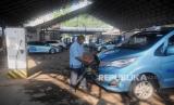 Sopir bersiap berkendara usai mengisi daya mobil listrik di Kantor Operasional Blue Bird, Jakarta, Senin (26/6/2023). PT Blue Bird Tbk menargetkan penambahan hingga 500 unit armada listrik dari total gabungan BYD E6, BYD T3 dan Ioniq 5. Implementasi ini sejalan dengan komitmen Visi Keberlanjutan Bluebird pada pilar BlueSky dengan agenda pengurangan emisi hingga 50 persen pada tahun 2030. (FOTO : Republika/Putra M. Akbar)