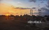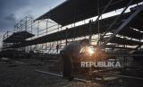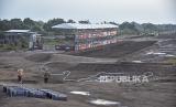 REPUBLIKA.CO.ID, MATARAM -- Sejumlah pekerja memasang tiang di area paddock pembangunan sirkuit Motocross Grand Prix (MXGP) di bekas Bandara Selaparang, Mataram, NTB, Senin (26/6/2023).