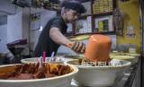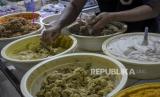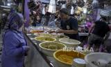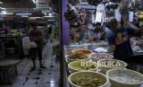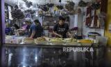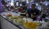 Penjual bumbu melayani pembeli di kiosnya di Pasar Kosambi, Kota Bandung, Jawa Barat, Selasa (27/6/2023). Berdasarkan keterangan pedagang di pasar tersebut jelang Idul Adha 1444 H, penjualan bumbu seperti bumbu rendang, rawon, sate, tongseng hingga soto yang dijual dengan harga Rp10 ribu hingga Rp50 ribu per bungkus itu mengalami peningkatan penjualan hingga 50 persen. (FOTO : ABDAN SYAKURA/REPUBLIKA)