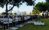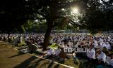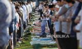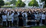 Jamaah melaksanakan sholat Idul Adha di Masjid Al-Azhar, Jakarta, Rabu (28/6/2023). Warga Muhammadiyah melaksanakan ibadah shalat Idul Adha lebih awal atau jatuh pada Rabu (28/6), Sementara pemerintah melalui Kementerian Agama menetapakan hari raya Idul Adha 1444 Hijriah jatuh pada Kamis (29/6). (FOTO : Republika/Thoudy Badai)