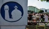 Jamaah bersiap melaksanakan sholat Idul Adha di Masjid Al-Azhar, Jakarta, Rabu (28/6/2023). Warga Muhammadiyah melaksanakan ibadah shalat Idul Adha lebih awal atau jatuh pada Rabu (28/6), Sementara pemerintah melalui Kementerian Agama menetapakan hari raya Idul Adha 1444 Hijriah jatuh pada Kamis (29/6). (FOTO : Republika/Thoudy Badai)