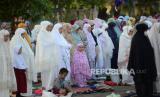 Umat muslim mengikuti shalat Idul Adha di Pelabuhan Sunda Kelapa, Jakarta, Kamis (29/6/2023). Pemerintah menetapkan Idul Adha 1444 H jatuh pada 29 Juni 2023. Hari raya Idul Adha dirayakan seluruh umat islam ditandai dengan pemotongan hewan kurban. (FOTO : Republika/Prayogi)