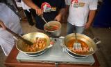 Senior Chef mencicipi masakan daging kurban milik warga saat acara Gerakan Masak Daging Qurban, di Kawasan Masjid Gedhe Kauman, Yogyakarta, Kamis (29/6/2023). Gerakan ini hadir untuk membantu warga dhuafa berkesempatan makan daging kurban dan tidak dijual penerima. Kegiatan yang sudah enam kali diadakan ini menyasar buruh kasar, tukang becak, pemulung, dan warga kurang mampu. Sebanyak 50 chef mengikuti gerakan memasak ini dengan standar rasa hotel berbintang. Menu yang ditawarkan yakni Gulai, Tongseng, Krengsengan, dan Sate Goreng. (FOTO : Republika/Wihdan Hidayat)