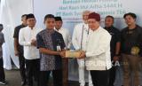 Direktur Utama BSI Hery Gunardi (kiri) menyerahkan secara simbolis bantuan hewan kurban di Jakarta, Kamis (29/6/2023). BSI memberikan 7.112 hewan kurban di berbagai wilayah seluruh Indonesia. Jumlah ini naik dua kali lipat dibanding tahun sebelumnya sebanyak 3.691 hewan kurban. (FOTO : Dok Republika)