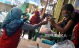 Warga mengambil gilingan daging di Pasar Colombo, Sleman, Yogyakarta, Jumat (30/6/2023). Hari Raya Idul Adha jasa penggilingan daging kerbanjiran orderan. Banyak warga yang mendapat pembagian daging kurban menggiling daging atau membuat adonan bakso. Karena banyaknya pesanan harga jasa penggilingan daging juga naik, dari Rp 20 ribu pada hari biasa menjadi Rp 25 ribu per kilogramnya. Selain itu, warga juga harus antre dengan pengambilan nomer urut terlebih dahulu. (FOTO : Republika/Wihdan Hidayat)