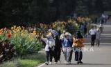 Sejumlah pengunjung berwisata di Kebun Raya Bogor, Kota Bogor, Jawa Barat, Jumat (30/6/2023). Pada libur Hari Raya Idul Adha 1444 Hijriah, jumlah pengunjung yang berwisata ke Kebun Raya Bogor meningkat 10 persen atau sebanyak 5.000 wisatawan terhitung sejak Rabu (28/6/2023). (FOTO : Republika/Putra M. Akbar)