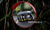 Sejumlah pengunjung menaiki kereta wisata di Kebun Raya Bogor, Kota Bogor, Jawa Barat, Jumat (30/6/2023). Pada libur Hari Raya Idul Adha 1444 Hijriah, jumlah pengunjung yang berwisata ke Kebun Raya Bogor meningkat 10 persen atau sebanyak 5.000 wisatawan terhitung sejak Rabu (28/6/2023). (FOTO : Republika/Putra M. Akbar)