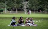Sejumlah pengunjung piknik saat berwisata di Kebun Raya Bogor, Kota Bogor, Jawa Barat, Jumat (30/6/2023). Pada libur Hari Raya Idul Adha 1444 Hijriah, jumlah pengunjung yang berwisata ke Kebun Raya Bogor meningkat 10 persen atau sebanyak 5.000 wisatawan terhitung sejak Rabu (28/6/2023). (FOTO : Republika/Putra M. Akbar)